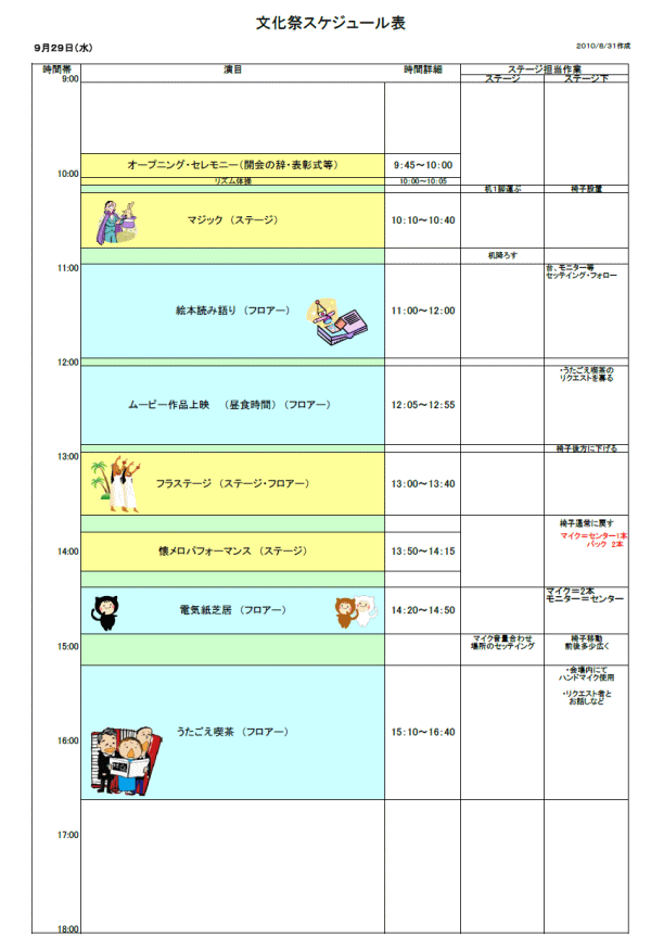 ステージ周りのスケジュール