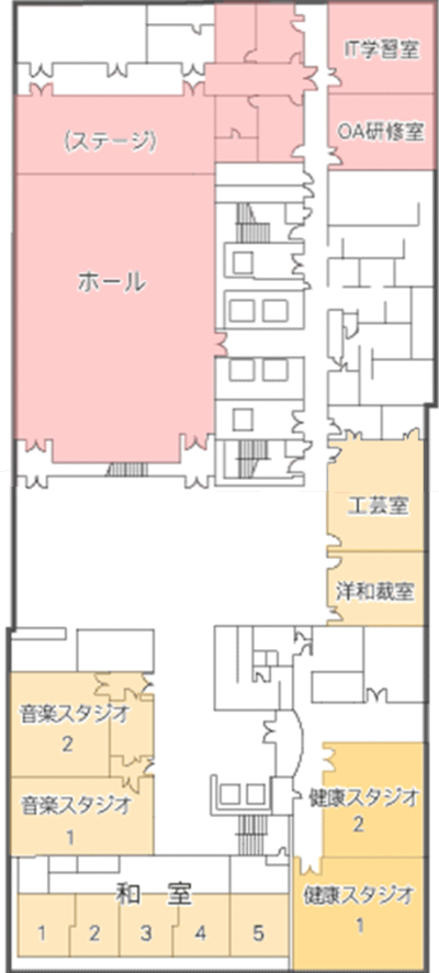 会場は 2階「活動室」です。わからないときは、入口管理人室でお尋ねください。